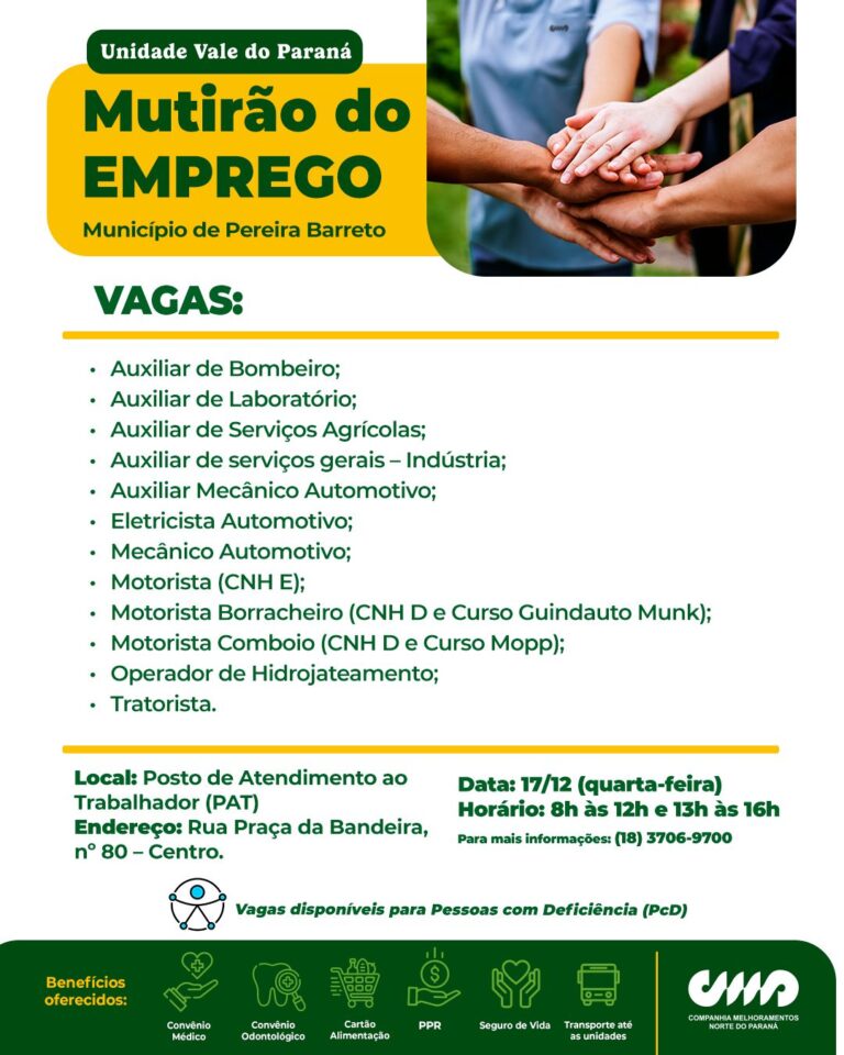 PAT de Pereira Barreto firma parceria com grandes empresas e abre dezenas de novas vagas de trabalho