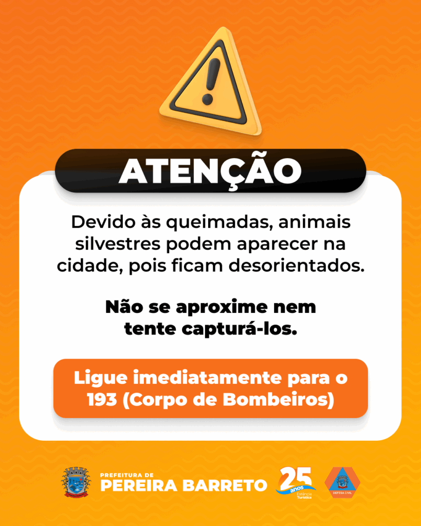 A Defesa Civil de Pereira Barreto emitiu um alerta à população sobre o aumento da presença de animais silvestres desorientados na área urbana. A situação ocorre principalmente durante o período de queimadas, quando o fogo e a fumaça destroem parte do habitat natural, fazendo com que diversos animais fiquem perdidos e busquem abrigo em locais próximos às residências.