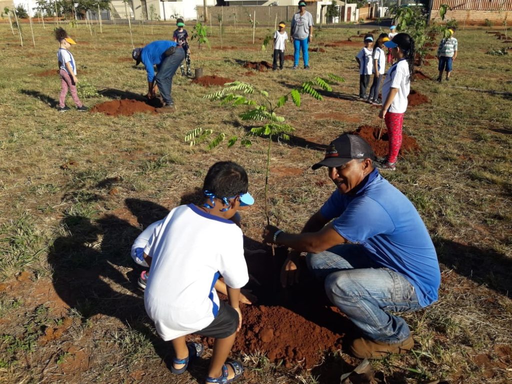 Cerca de 50 alunos da EMEI “Sítio do Pica-Pau Amarelo” realizaram o plantio de mudas de ipê rosa, Ipê branco, aroeira e palmeira gerivá neste mês, em uma área verde da Prefeitura Municipal, localizada no bairro Antônio Gomes. Os alunos tiveram a oportunidade de comemorar e colaborar com o meio ambiente.