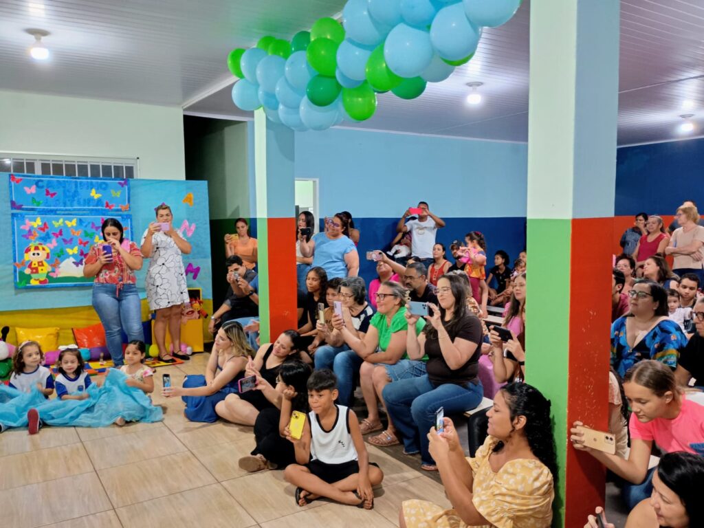 Durante o Sarau, o ponto alto foram as apresentações das crianças. As famílias puderam prestigiar a desenvoltura dos estudantes, vivenciando um momento de integração valiosa entre casa e escola e reforçando a importância da literatura na Educação Infantil.
