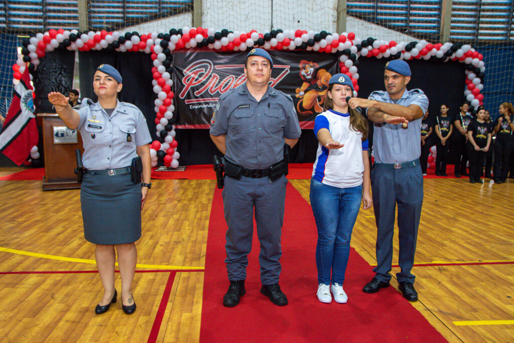 A cerimônia de formatura contou com a presença de diversas autoridades municipais e oficiais da Polícia Militar. Estiveram presentes o Prefeito Dr. Herminio Barbosa Komatsu, o Secretário de Educação Cidmar Vicentin da Silva e a Chefe de Gabinete Vanessa Souza de Lopes Gardim. Representando o Poder Legislativo, compareceram o Presidente da Câmara Municipal Fabio Akira Irikura e os vereadores Valéria Dos Santos Felipe, Daniel César Oliveira De Melo, Luiz Guilherme Tiago Rossini e Fábio José França.