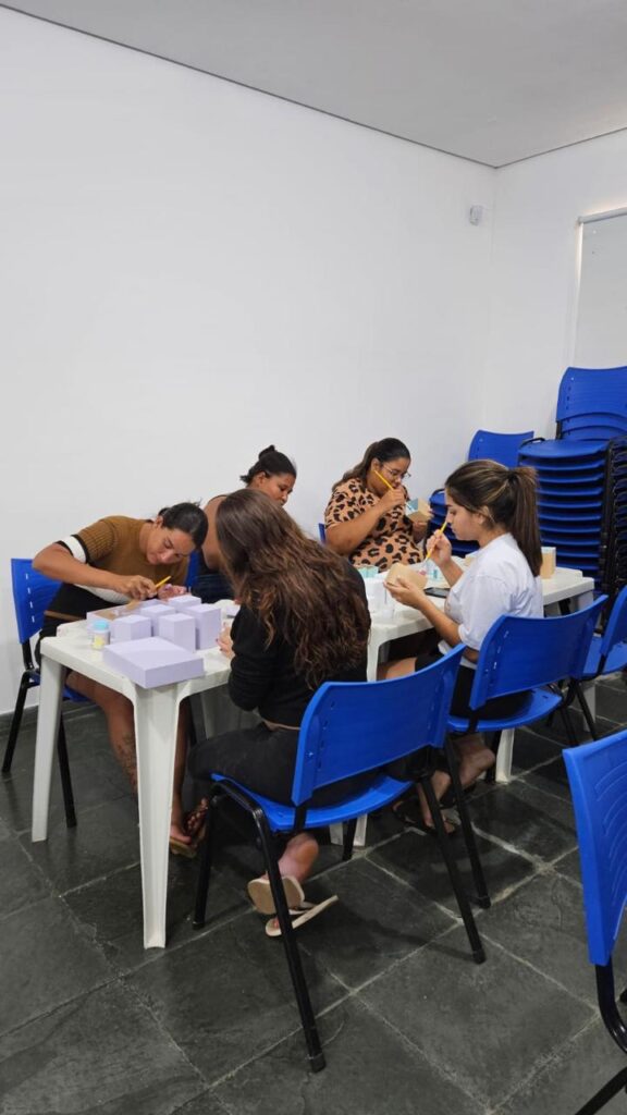 Durante os encontros, que acontecem uma vez por mês na unidade do CRAS, as gestantes participam de atividades artesanais, confeccionando kits de higiene em MDF e porta maternidade para os bebês, além de rodas de conversa com a psicóloga do CRAS. O grupo também aborda diversos temas relacionados à gestação e à maternidade e realiza doações de itens e vestuário para bebês.