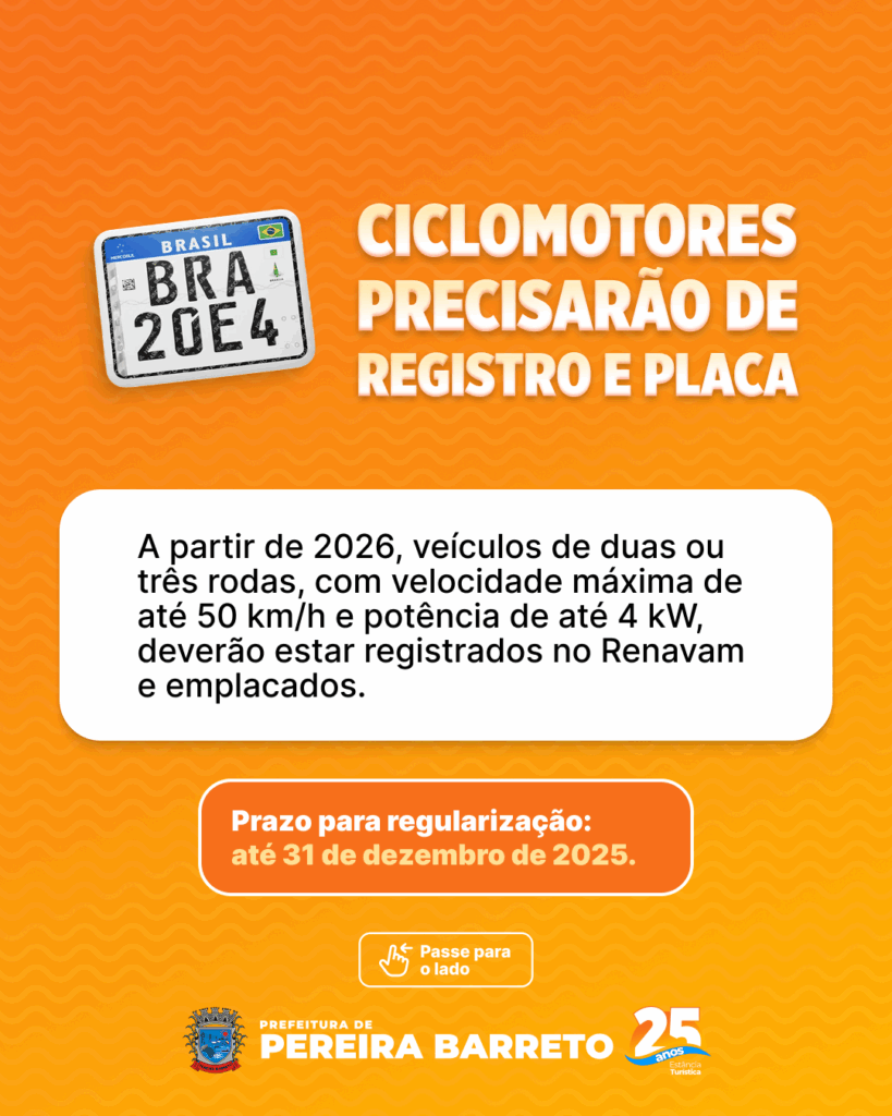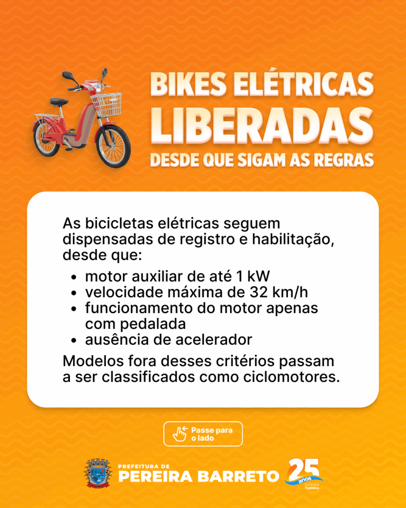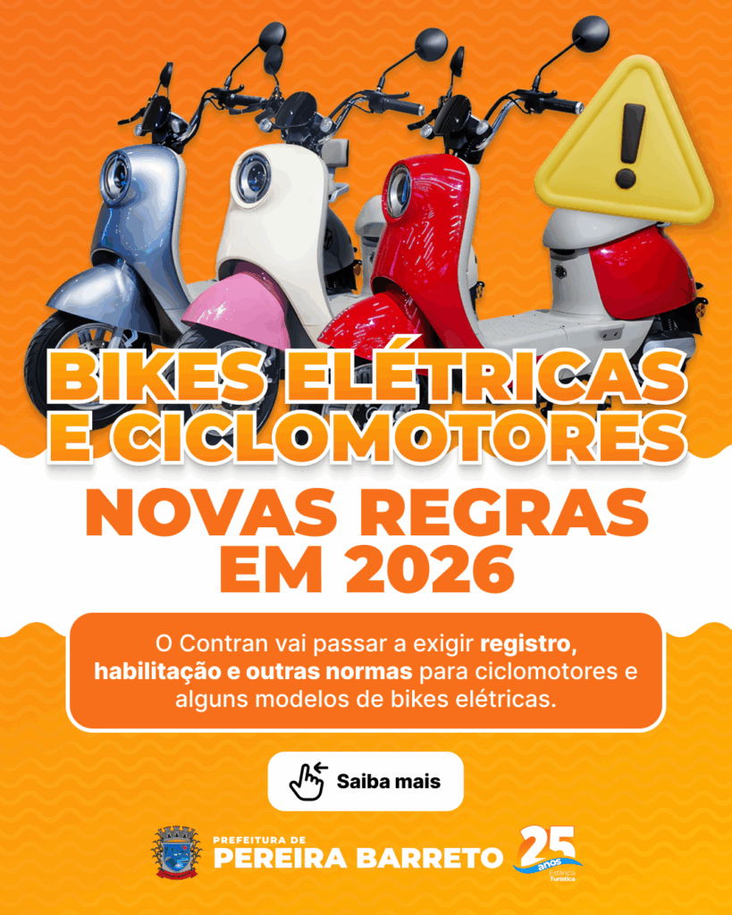 A Prefeitura Municipal de Pereira Barreto, por meio da Diretoria de Segurança Pública, alerta os condutores sobre a nova legislação federal que estabelece regras rigorosas para a circulação de ciclomotores, bicicletas elétricas e equipamentos de mobilidade individual autopropelidos. As novas normas, instituídas pela Resolução nº 996/23 do Conselho Nacional de Trânsito (Contran), têm como foco principal a segurança viária e a proteção dos pedestres.