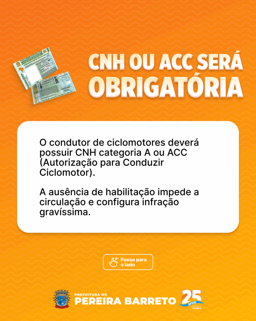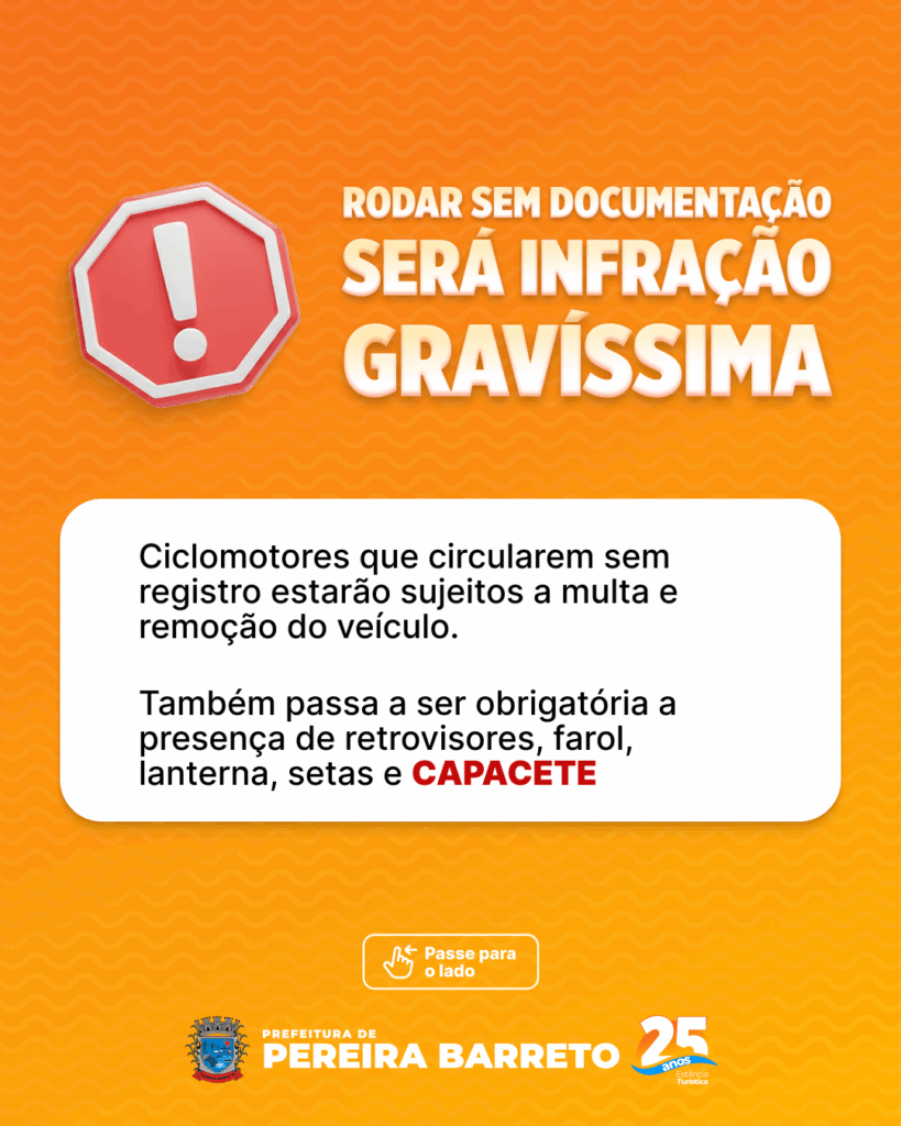 As novas normas entram em vigor a partir de 1º de janeiro de 2026. As autoridades de trânsito alertam que a fiscalização será intensificada e orientam os condutores a se adaptarem às exigências legais. A medida busca promover um trânsito mais seguro, organizado e humano em Pereira Barreto.