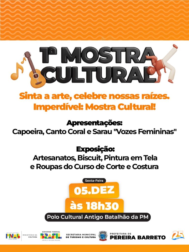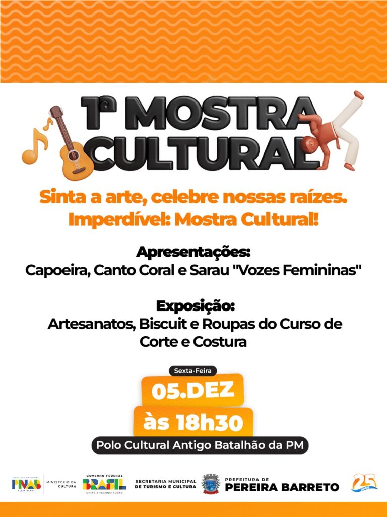 O Polo Cultural Nego Fria convida toda a população de Pereira Barreto para prestigiar a sua I Mostra Cultural, um evento inaugural que celebrará a arte e o talento local. A mostra está marcada para a próxima sexta-feira, 05 de dezembro de 2025, a partir das 18h30.