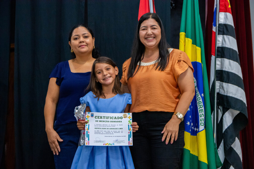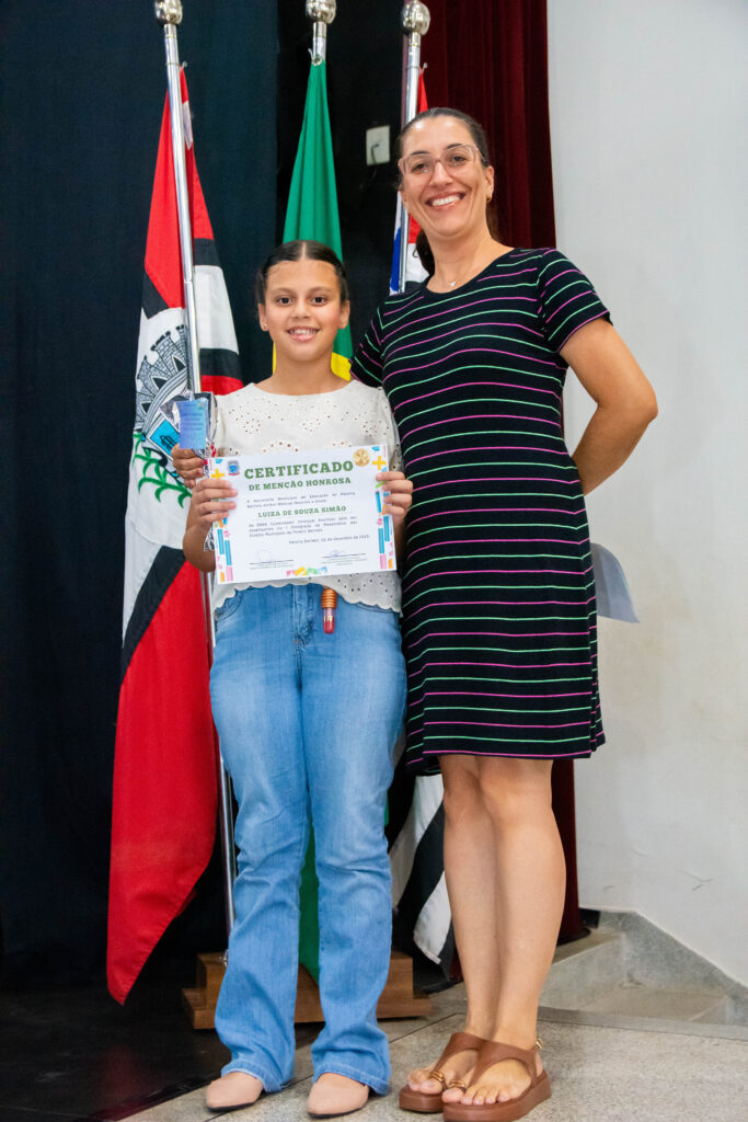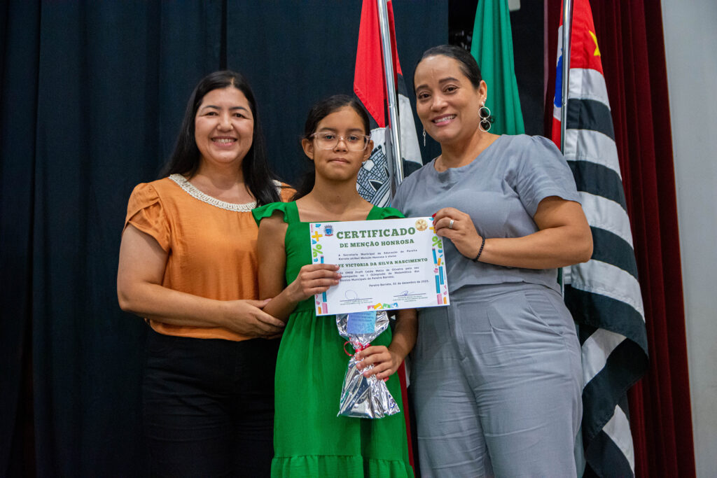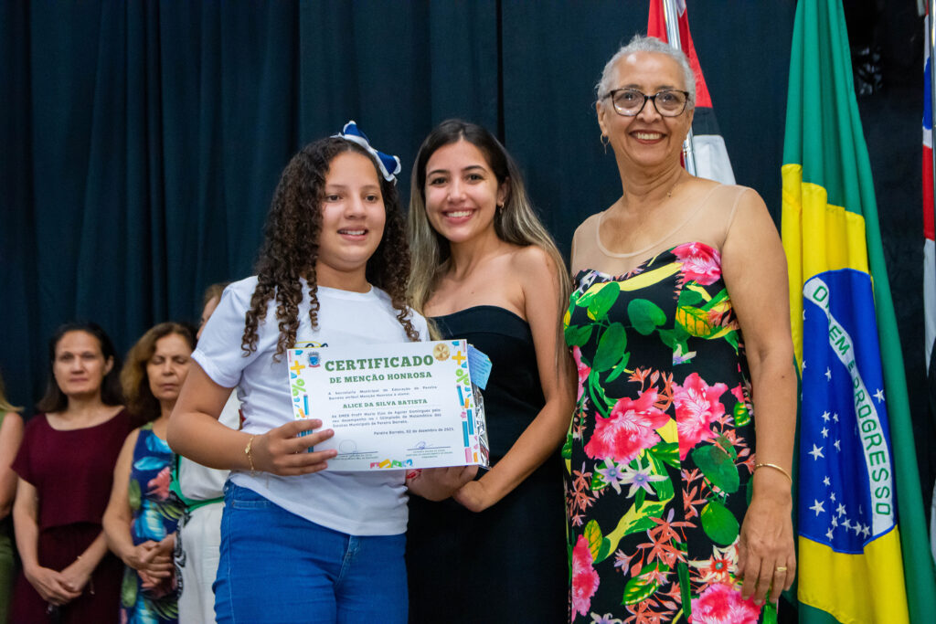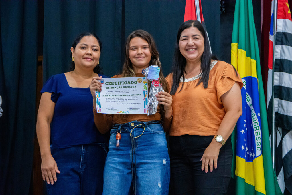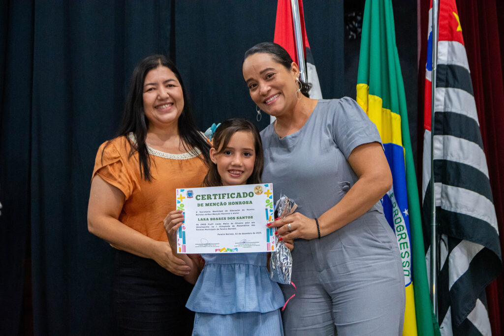 A cerimônia de entrega foi um momento de grande emoção e reconhecimento, reunindo familiares, gestores escolares e professores, que acompanharam com orgulho a celebração das conquistas.