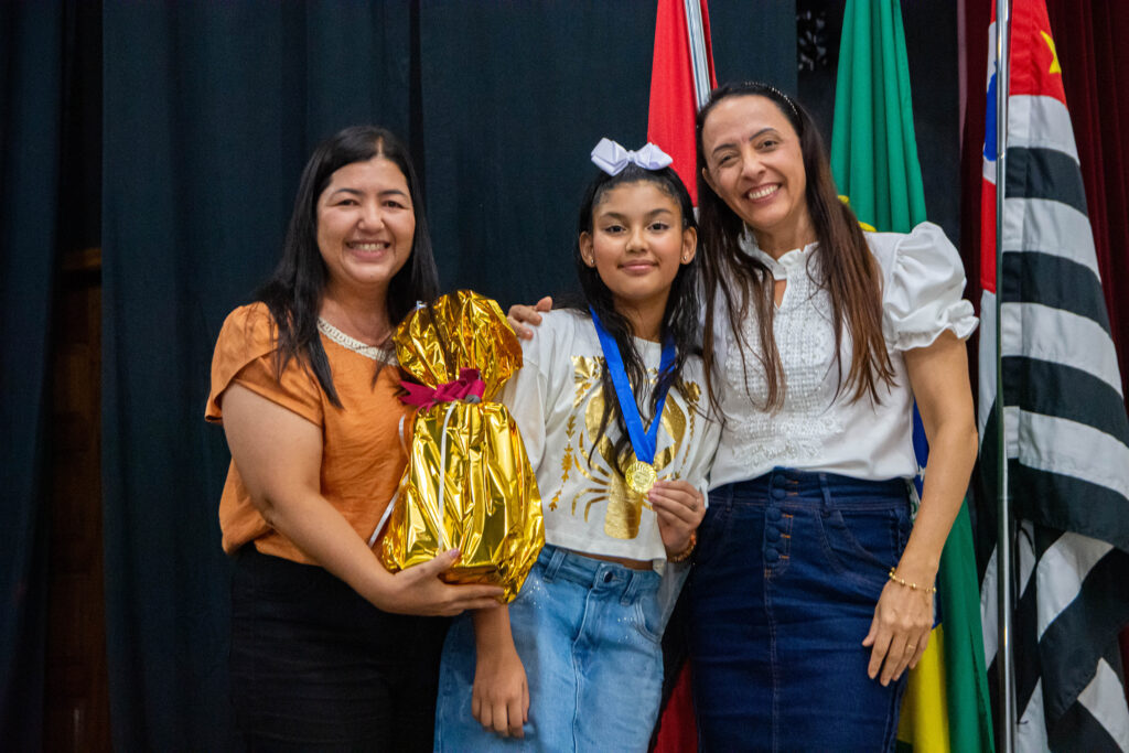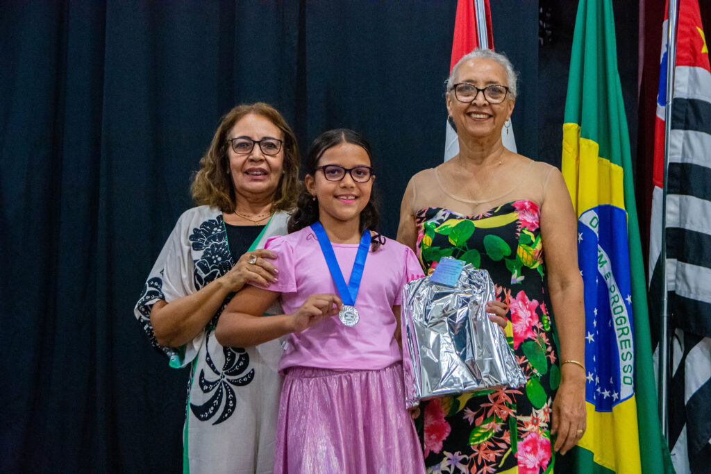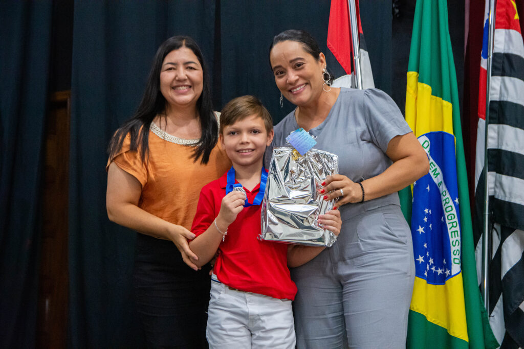 Os alunos classificados e de destaque foram premiados com medalhas de ouro, prata, bronze e menção honrosa, além de receberem mimos pela participação.